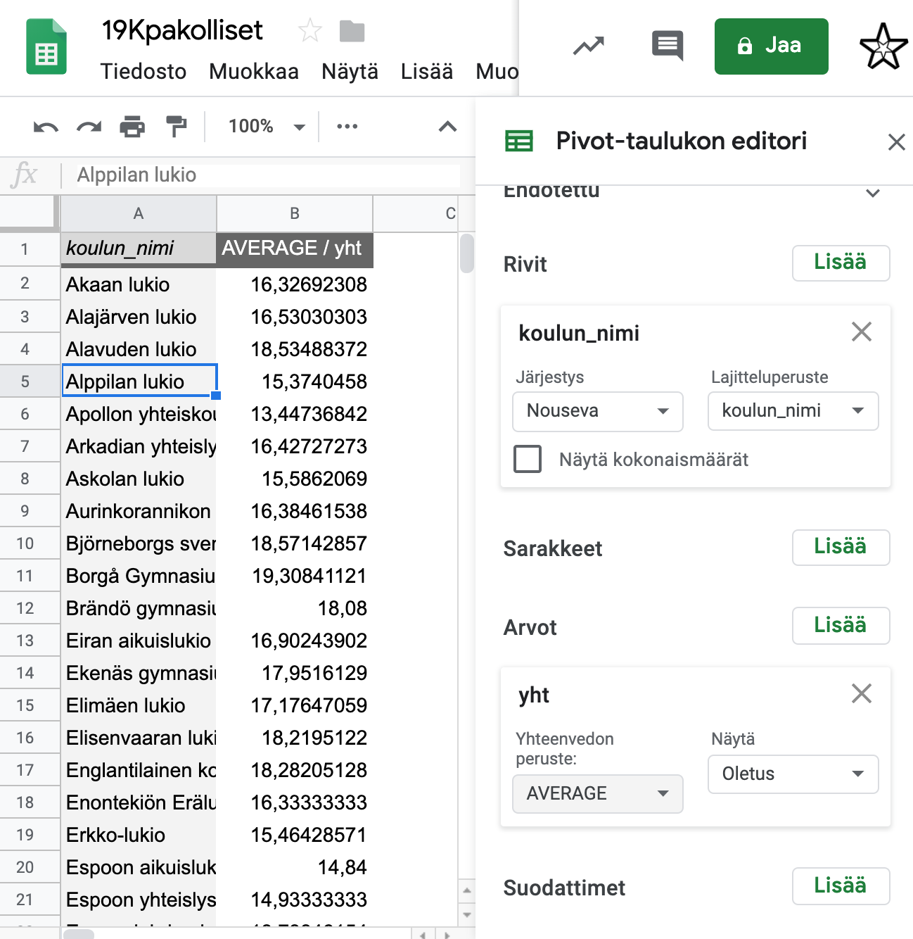 1. […] tarinassani esitin miten YTL:n jakamaa oppilaskohtaista dataa voi käsitellä Google Sheetsissä. Tässä […]