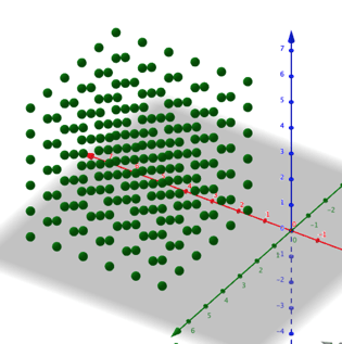 Luodaan ensin kaikki tulosvaihtoehdot pisteiksi kolmiulotteiseen koordinaatistoon käyttämällä kolmea sisäkkäistä Jono-komentoa. Jos tämän kirjoittaa käsin, niin kannattaa ensin kirjoittaa