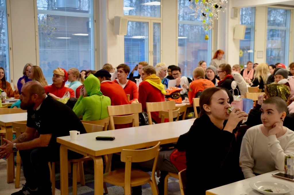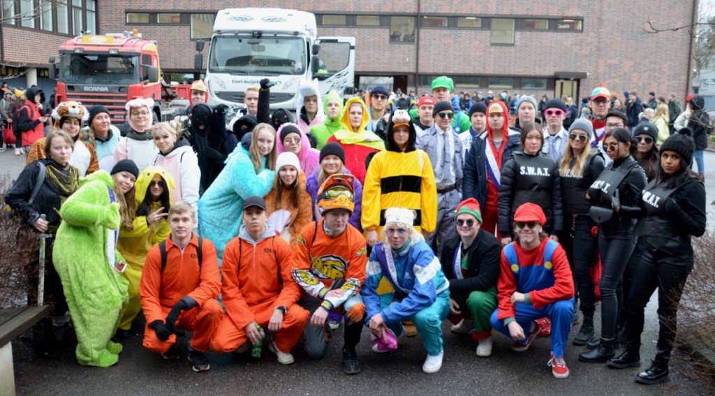 Then they visited upper secondary classes giving candies to pupils. Finally, the trucks came, and they left for a ride around city with all the other high schools in Helsinki City.