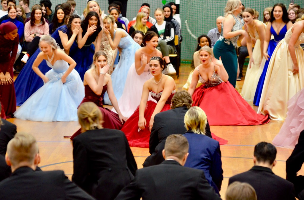 On Thursday the 12th graders (3rd graders in high school) left the school. The day is called in Finnish “penkinpainajaiset or penkkarit”. So, the 11th graders became the oldest students at our school. Last months they have been practicing old traditional dances like mazurka, cicapo, polonaise, viennese walz, tango, fireman’s dance, … for the Senior Prom, “vanhojen tanssit” in Finnish. In some high schools the ball is on Thursday evening but in our school, it is on Friday evening. In our school we also have a tradition that on Thursday some seniors visit elder people at a local nursing home.