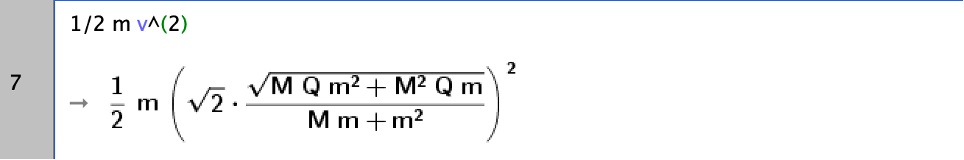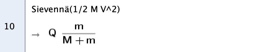 Saman asian olisi voinut tehdä suoraan Sievennä-komennolla. Lasketaan ja sievennetään sen avulla tytärytimen liike-energia.