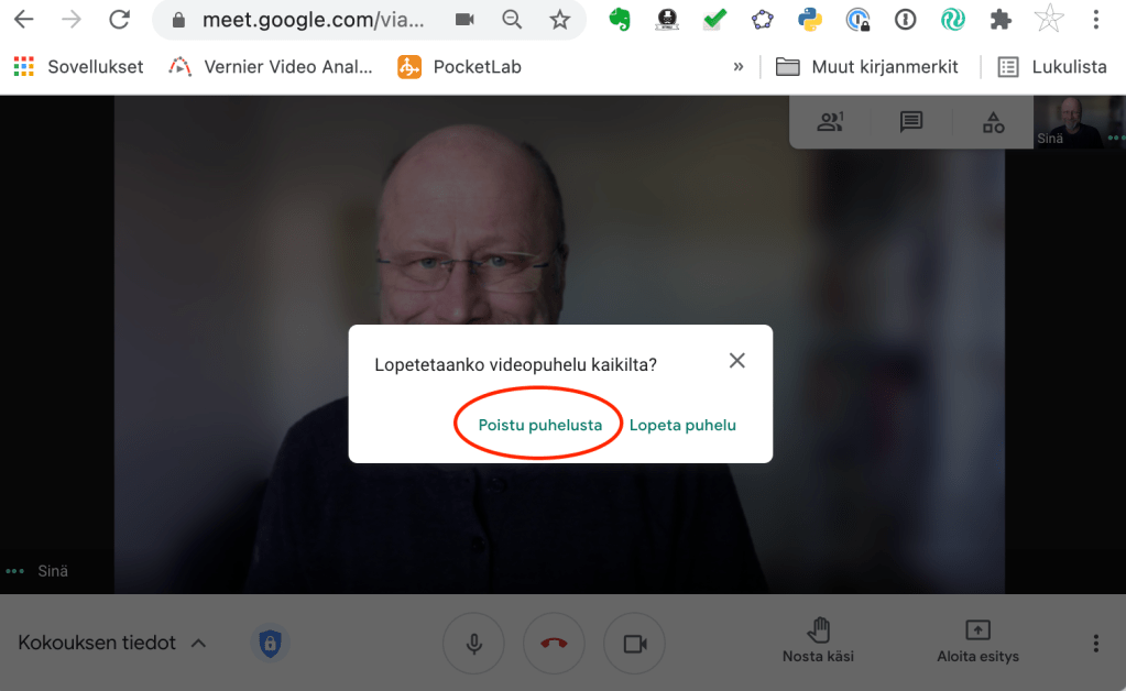 Oppitunti kannattaa lopettaa Poistu puhelusta -painikkeella.