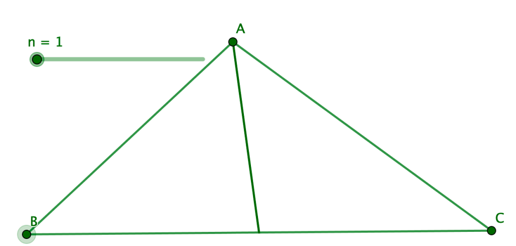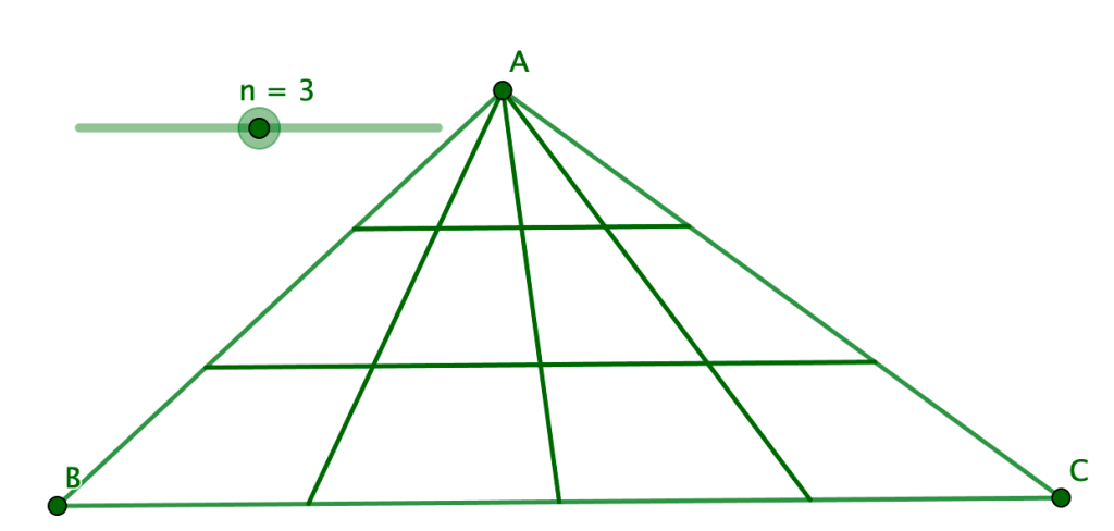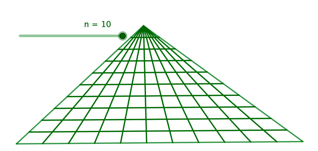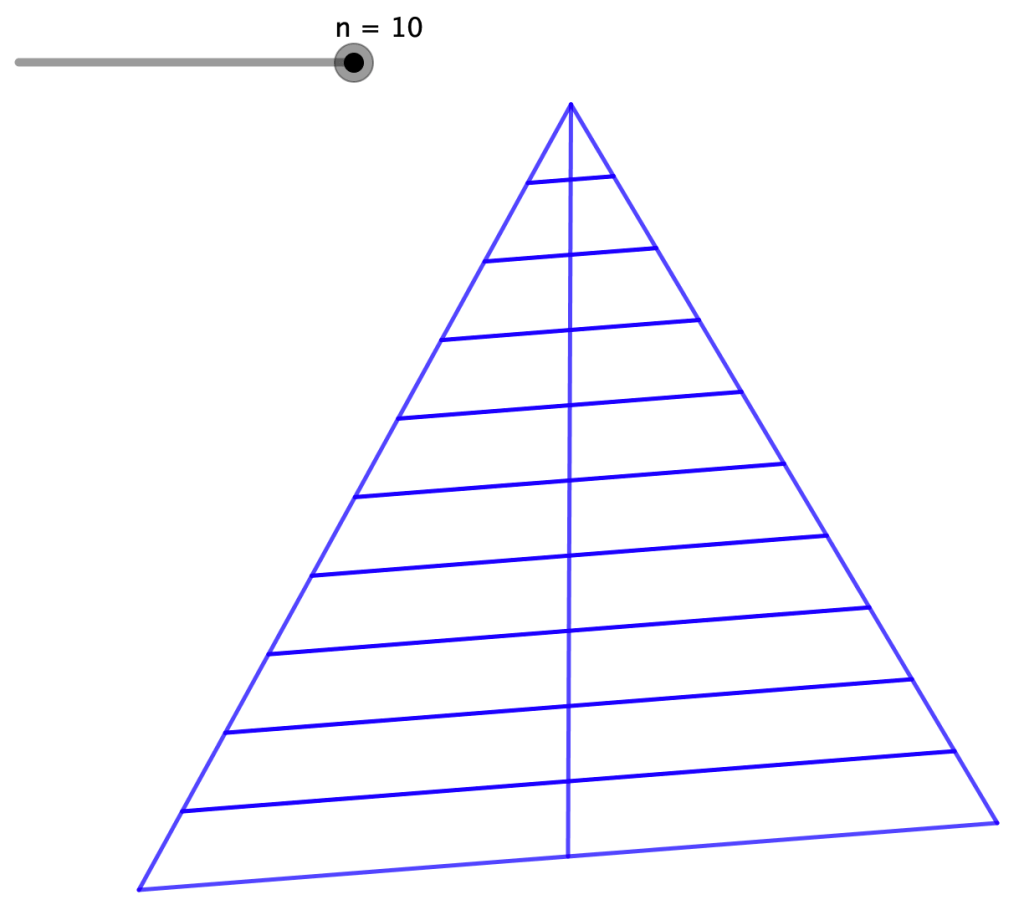 Muokkasin alkuperäista kuvaa siten, että kolmion ylimmästä kärjestä lähtevien janojen lukumäärä kasvaa.