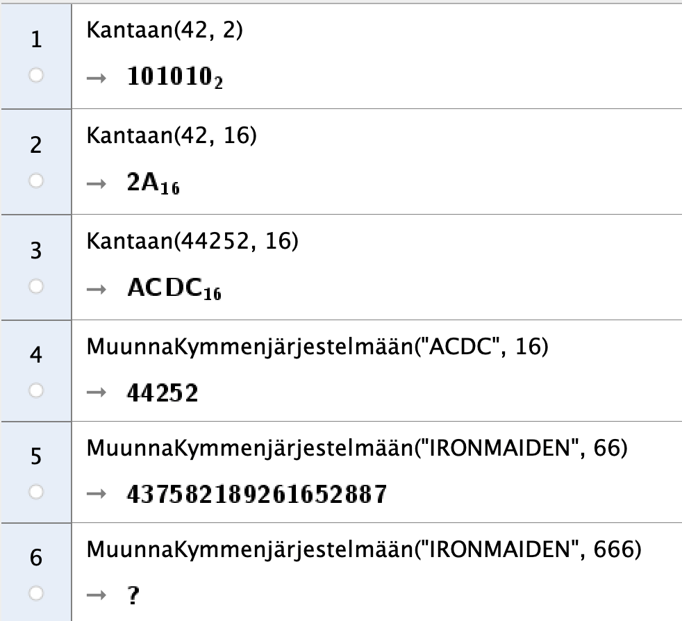 [edit. 18.3. Lisäsin luvun ”lukujen esittäminen eri lukujärjestelmissä” tuonne loppupuolelle tarinaa, korjasin pari kirjootusvihrettä. Lisäsin linkin GeoGebraWikin funktiosivulle.]