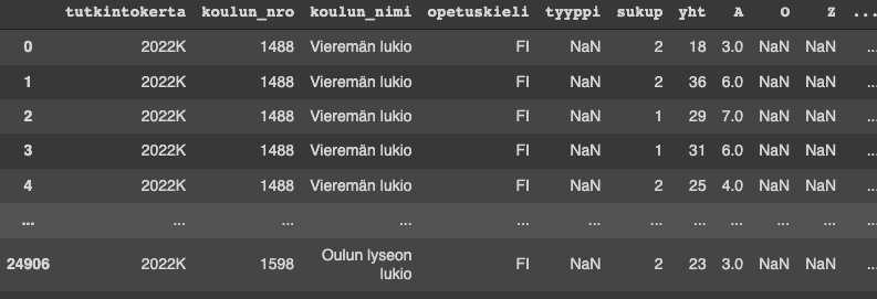Tähän käytetty tiedosto löytyy ytl:n sivulta https://www.ylioppilastutkinto.fi/tietopalvelut/tilastot/koulukohtaisia-tunnuslukuja