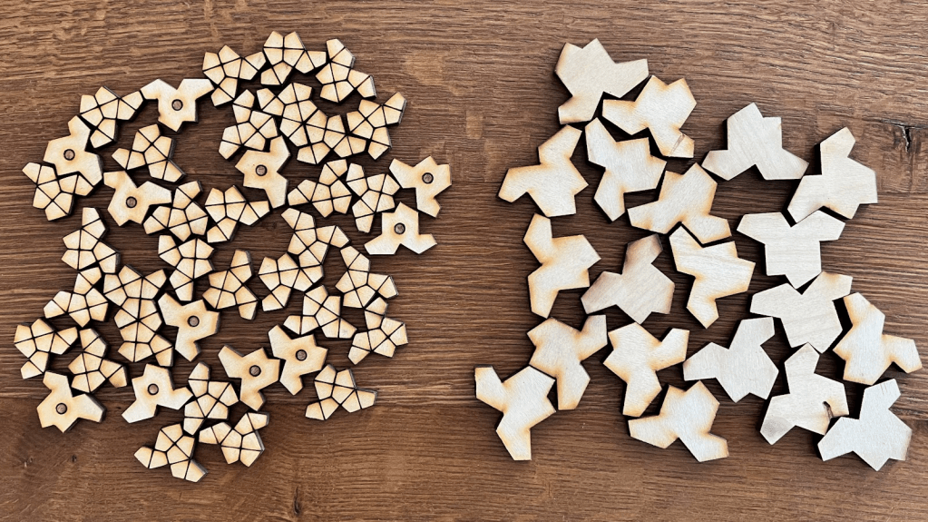 Noin viikko sitten kerroin Matille jaksottomista laatoituksista. Hän innostui asiasta sen verran, että päätti tehdä niitä vanerista laserleikkurilla, samalla syntyi tyylikäs rasia.