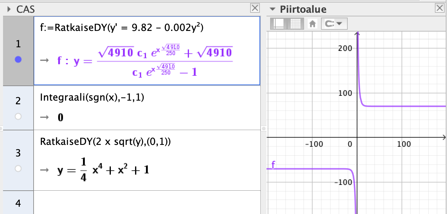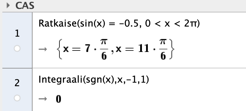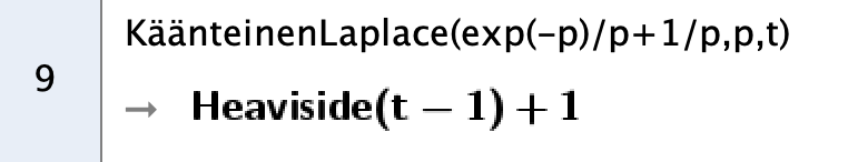 Joissain CAS-laskuissa tarkan arvon tuloksesessa näkyy Heaviside()- ja Dirac() -funktiot.