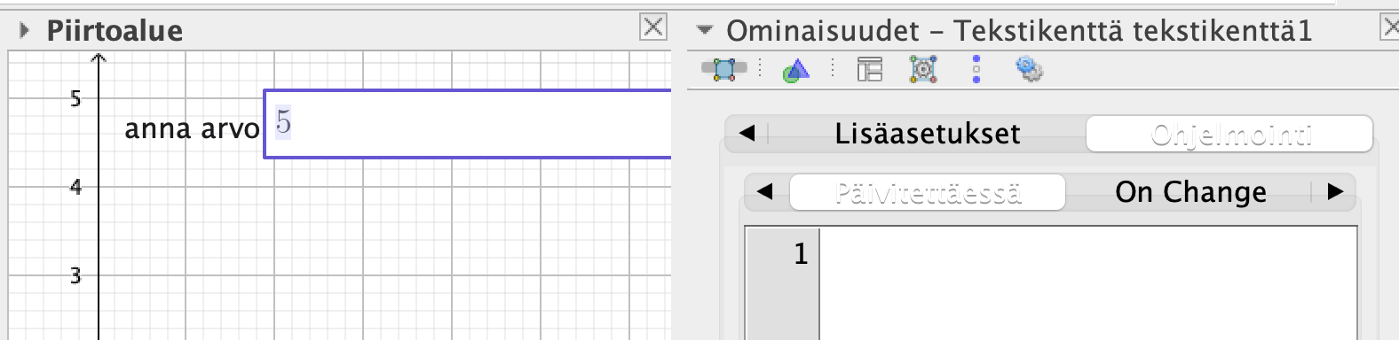 Uusi painike Tekstikenttä-objekteille ”On Change”. Käännän tämän lähiaikoina muotoon ”Kun Muuttuu”.