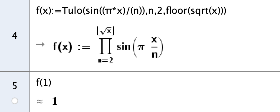 Näppäinkomento <Ctrl>-O pitäisi tuottaa jaksollisia desimaaleja. En saa toimimaan Macilläni. Piin arvon pitäisi toimia tarkkana arvona CASissa aina.