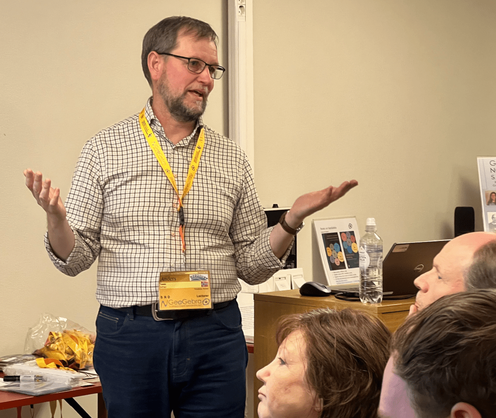 Konferenssin viilmeisellä luennolla Tanja ja Melanie jatkoivat tarinaansa GeoGebran tulevaisuudesta (”GeoGebra Unboxed: Your Questions, Our Answers”). Heidän luentojensa suurin anti oli varmaankin se, että me käyttäjät saimme antaa palautetta ja kehitysehdotuksia ja saada vastauksia kysymyksiimme. Todella mielenkiintoista oli nähdä kokeiluversio, jossa GeoGebra Solver oli yhdistettu ChatGP:hen API-rajapinnan kautta. Tällä hetkellä tuo hanke kulkee nimellä GeoGebra AI Math Assistant. Tässä systeemissä tekoläly toimii opettajana. Myös USA:n OPS:iin perustuva materiaalihanke on tuottanut valtavan määrän hyviä appletteja matikan opetuksen avuksi. Materiaalipaketti löytyy osoiteesta https://www.geogebra.org/math Joku voisi valita täältä parhaat ja kääntää ne suomeksi ja pohtia missä kohtaa matikan opetusta niitä voisi käyttää oman OPS:imme mukaisesti.