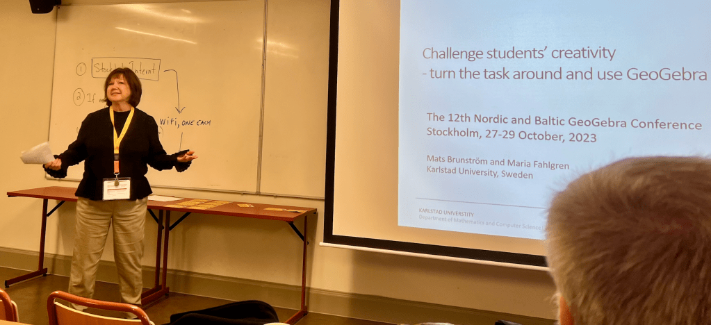 Andes Sanne (”What is exploratory teaching in mathematics?”) ja Mats Brunströmand & Maria Fahlgren (”Challenge students’ creativity – Turn the task around and use GeoGebra”) kertoivat tavoista tehdä muutoksia perinteiseen opetukseen. Molemmissa esityksessä keskeisenä ajatuksena oli oppilaan sitouttaminen opiskeltavaan aiheeseen.