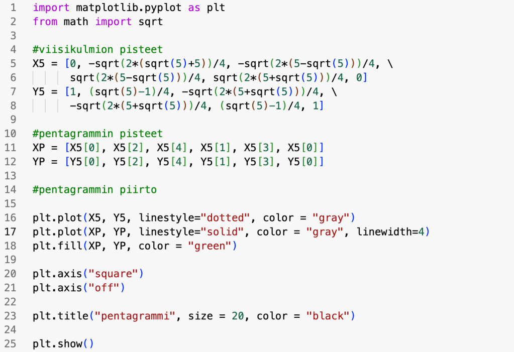 Piirretään viisikulmio ja luodaan sen avulla pentagrammi.
