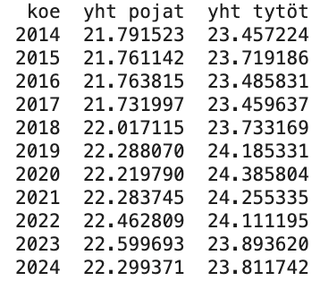 tyttöjen ja poikien aikasarjoja