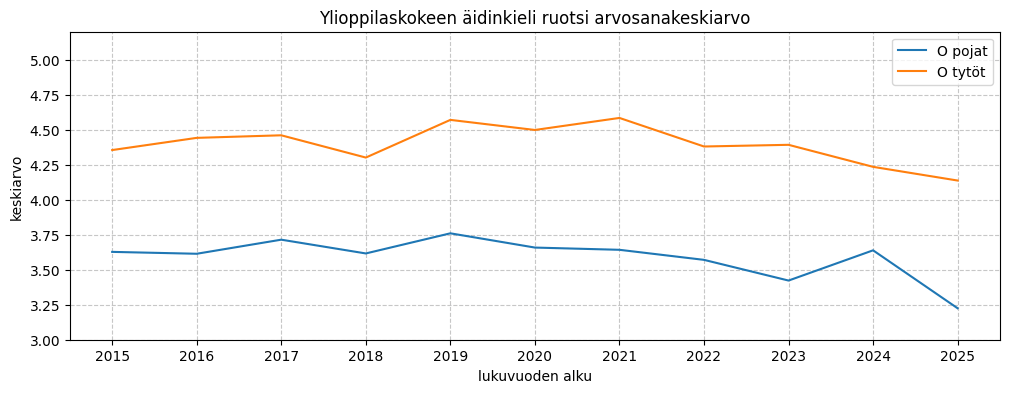 Tästä eteenpäin syksyn ja seuraavan kevään kokeet on yhdistetty koko lukuvuodeksi. Vuonna 25 ero oli tyttöjen hyväksi 1,6 arvosanaa.
