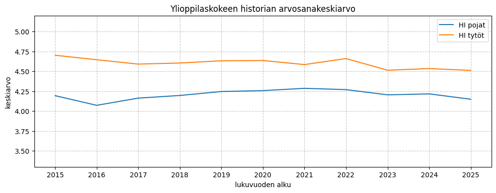 Edellisessä artikkelissani tutkin tämän vuoden ylippilaiden tuloksia ja vertailin tyttöjä ja poikia. Tässä katsellaan eroa pidemmältä aikaväliltä. Lisäsin viime vuoden Python koodiini tämän syksyn kokeet ja tulostin aikasarjojen kuvaajia viime vuosien ylioppilaiden tuloksista.
