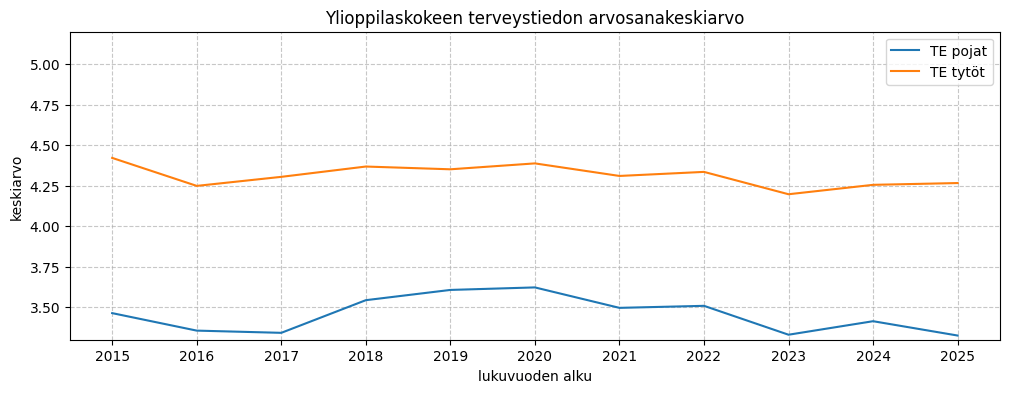 Terveystiedossa ja psykologiassa ero on ollut tyttöjen eduksi aika suuri. Tänä vuonna erotus tyttöjen hyväksi oli terveytiedossa 0,94 ja psykologiassa 0,67.