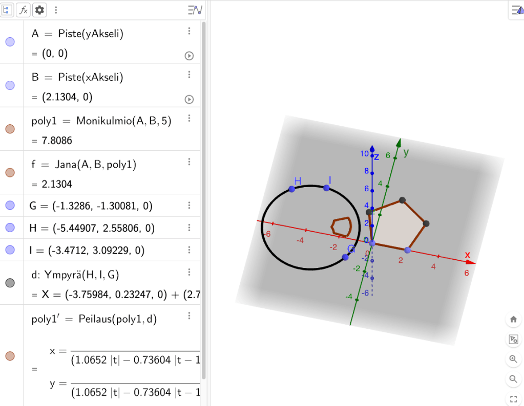 Korjaus monikulmion peilaukseen ympyrän suhteen 3D:ssä. [Reflect(poly1, circle)]
