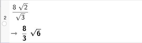 Korjaus (8 sqrt(2))/sqrt(3)-lausekkeen sieventämiseen CASissa.