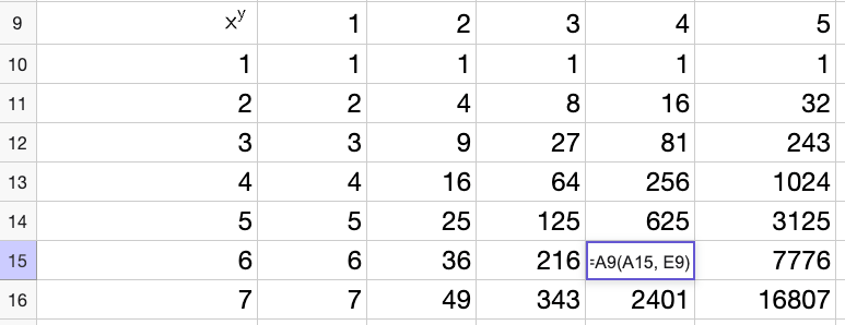 Niinpä edellisessä taulukossa kun näppäilee johonkin tyhjään soluun =A9(10,5), niin saa tulokseksi 100000.