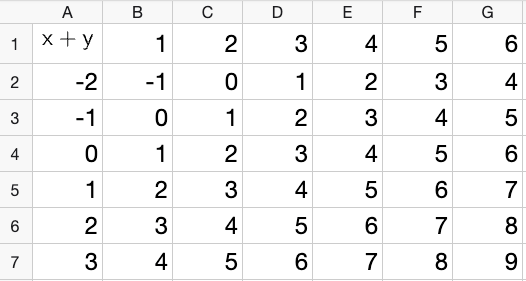 Luodaan ensin operaatiotaulu, tässä yhteenlaskutaulu.