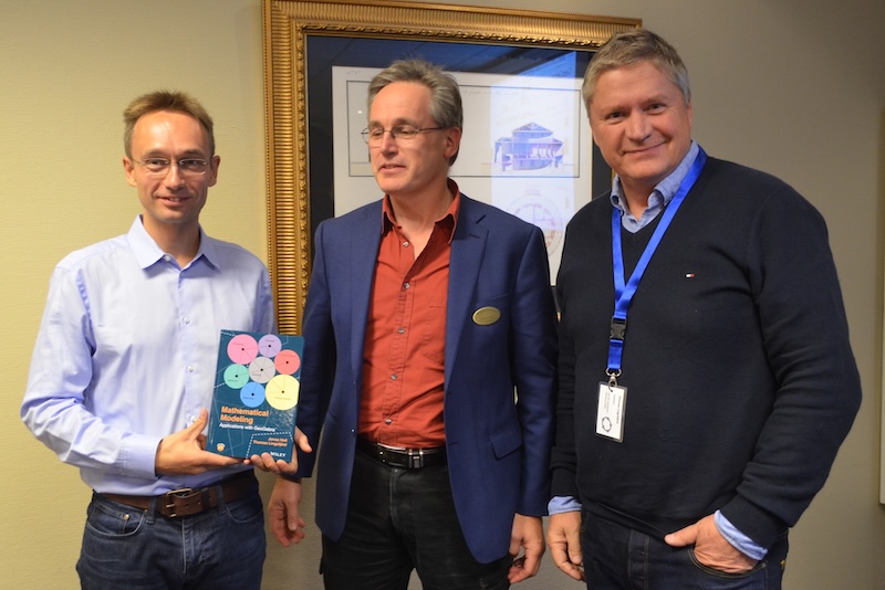 Kuvassa Jonas ja Thomas luovuttavat kirjan englanninkielisen version Markus Hohenwarterille Trondheimissa 2016.